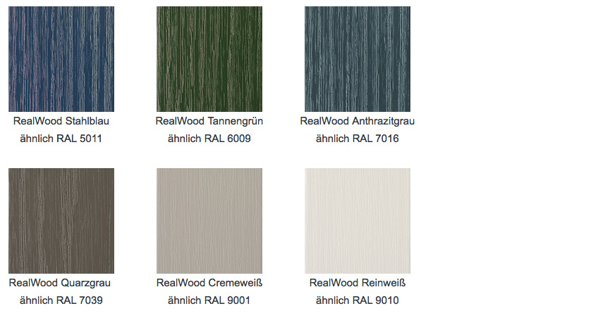 Wort-Bild-Marke RealWood angeboten. Elemente mit RealWood sind mit einer eigenen RealWood-Schutzfolie versehen.